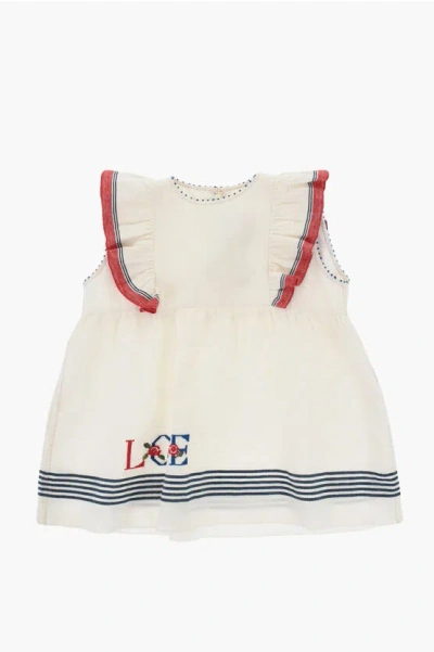 Kids' Linen Flared Dress With Ruffle Sleeves In White