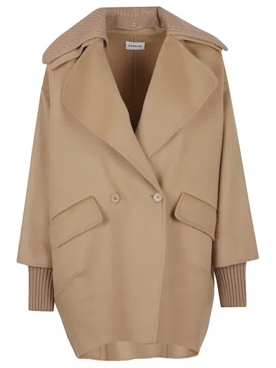 P. A.r. O.s. H. Double-breasted Beige Coat In Black