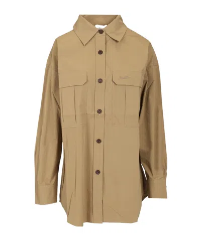 Cotton Blend Shirt Shirts Beige In Brown