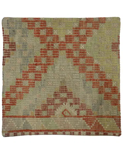 Vintage Turkish Kilim Wool Pillow Case In Green