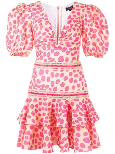 波点蕾丝边饰迷你连衣裙