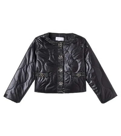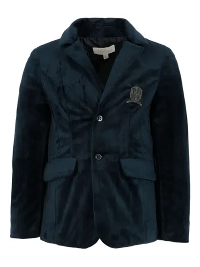 Kids' Gray Jacket For Boy With Velvet Details In Green