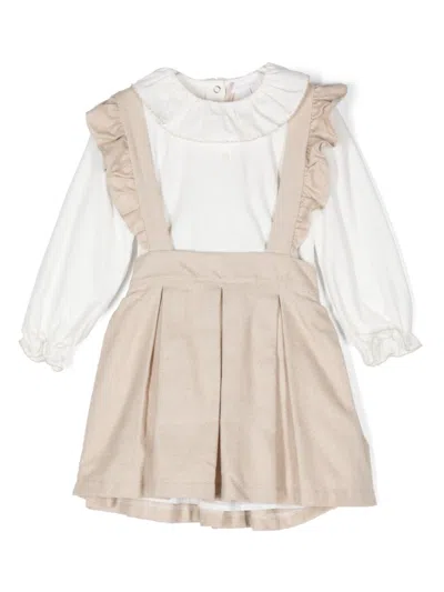 荷叶边马德拉刺绣棉质衬衫与半身裙套装
