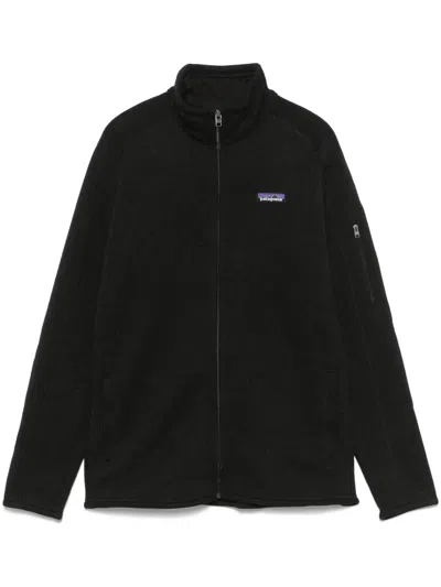 Textured Fleece Hooded Jacket With Zippered Pockets In Black