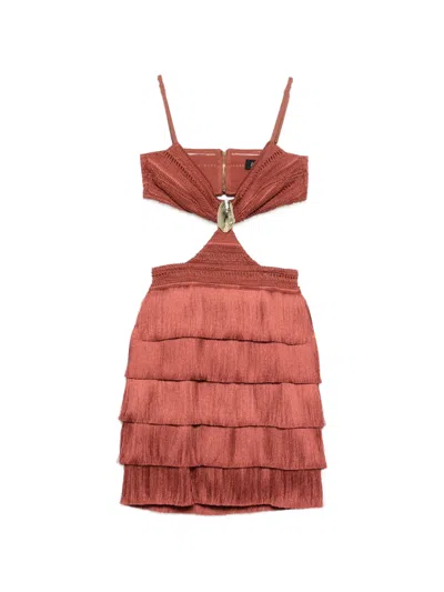 Pampas Mini Dress With Embroidery And Fringes In Gold