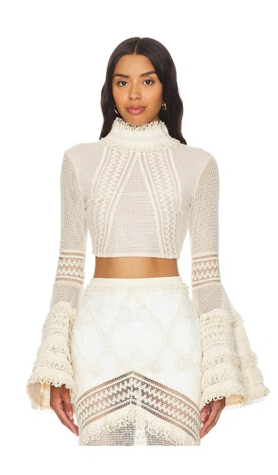 Embroidered Jade Crop Top In White