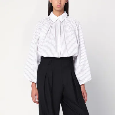 Striped Balloon-sleeve Shirt In Light Blue