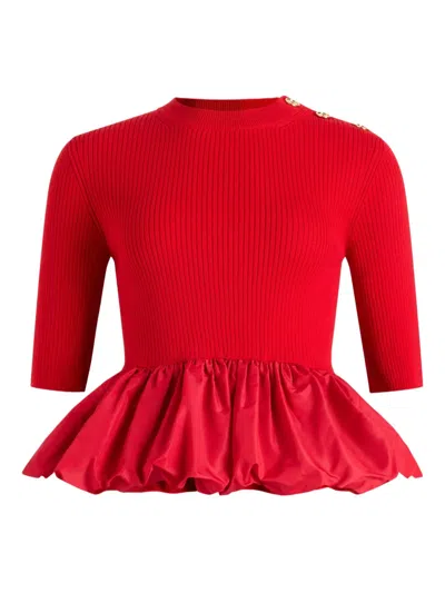 Ruffle Hem Ribbed Jumper In Wool And Faille Clothing In Red