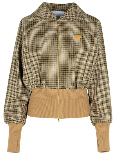 千鸟格羊毛混纺法兰绒飞行员夹克