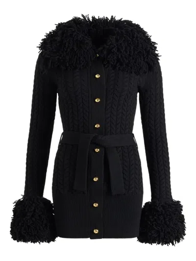 Long Cardigan With Wool And Cashmere Fringes In Black