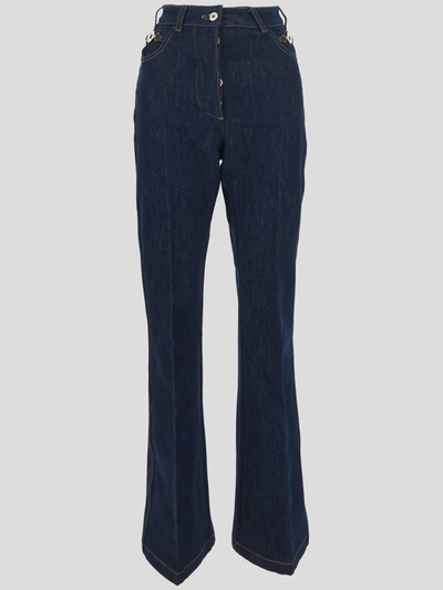 Flared Denim Trousers Featuring Gold-tone Hardware In Blue