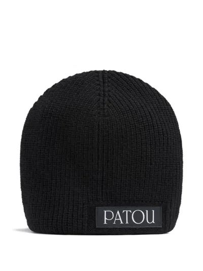 Black Virgin Wool Knitted Ribbed Beanie Hat In Beige
