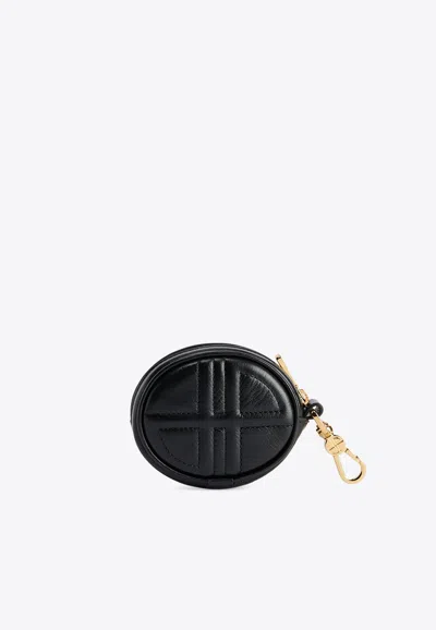 Mini Jp Leather Pouch Keyring In Black