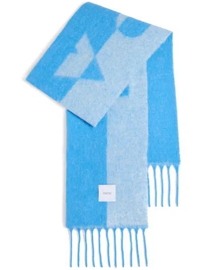Geometric-pattern Fringed Scarf In Blue