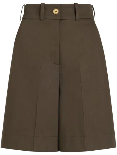 High-waisted Military Green Shorts With Pockets In Brown