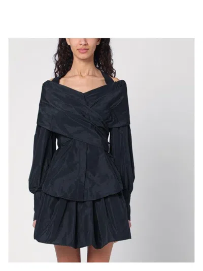Ribbed Sweater With Ruffled Hem In Wool And Faille In Black