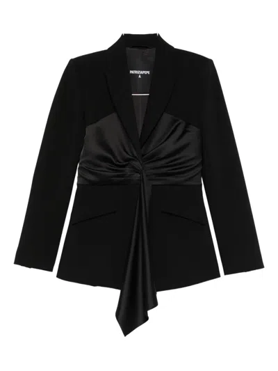 Tailored Draped Blazer With Satin Waist Panel In Black