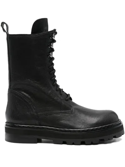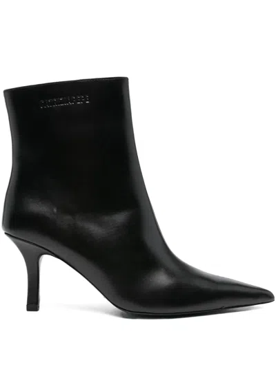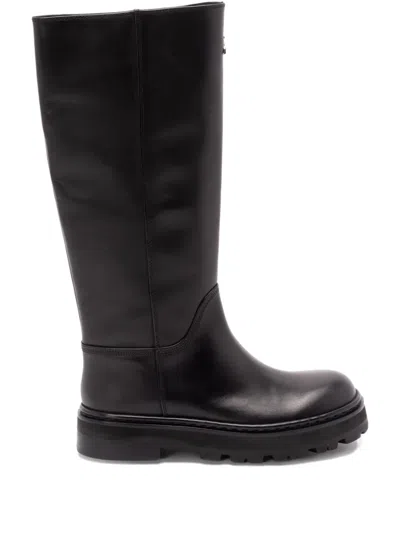 Asymmetrical Black Leather Boots With Front Buckle Detail