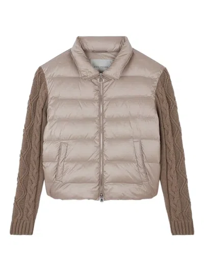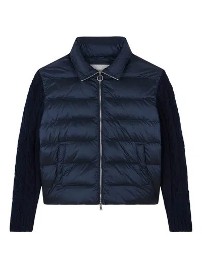 SHINY 混搭设计羽绒粗绞花针织夹克
