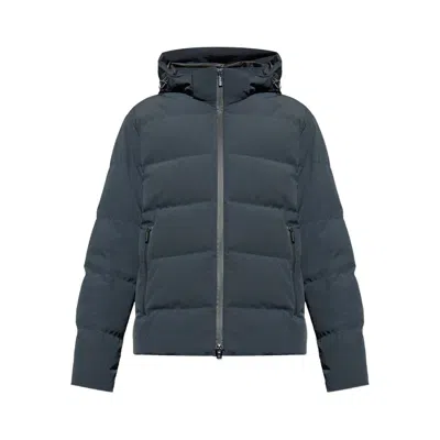 Technical Fabric Jacket With Zip And Hood In Blue