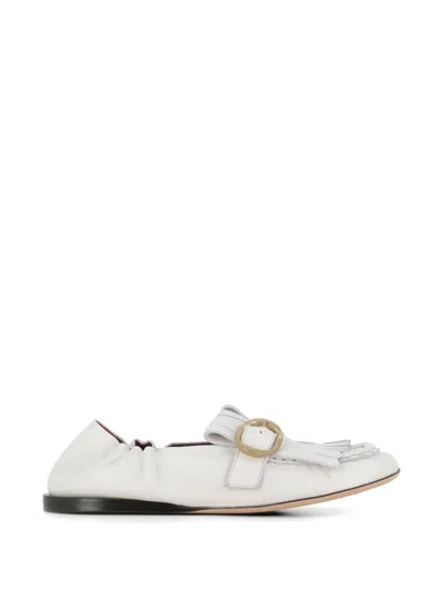 Buckle Fringed Loafers In White
