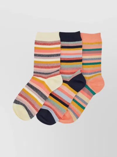 Three Pack Of Cotton Socks With Lurex Thread In Multi