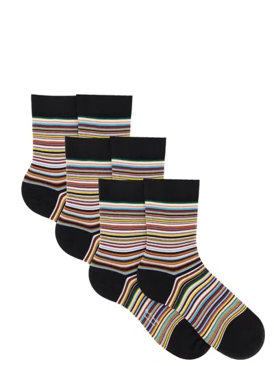 3 Pairs Of Ankle Length Striped Socks In Multi