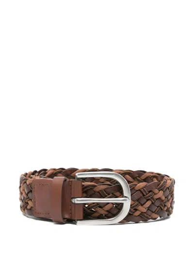 Brown Reversible Plaited Leather Belt In 66 Browns