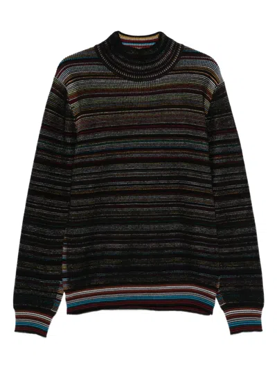 Striped-motif Polo Sweater In Black
