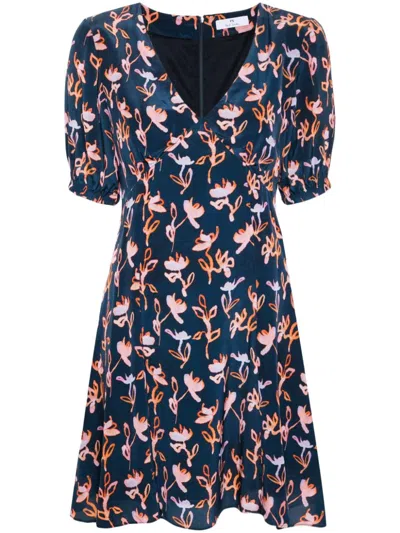 Abstract Print V-neck Mini Dress In Very Dark Navy
