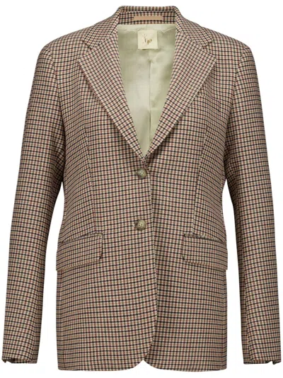 Houndstooth-check Wool Blazer In Brown