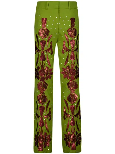 Silk Crepe Trousers In Green