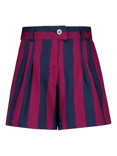 条纹褶饰短裤