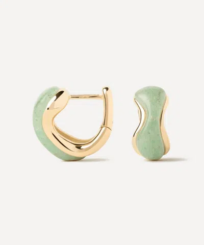 18ct Gold-plated Green Aventurine Musa Huggie Hoop Earrings