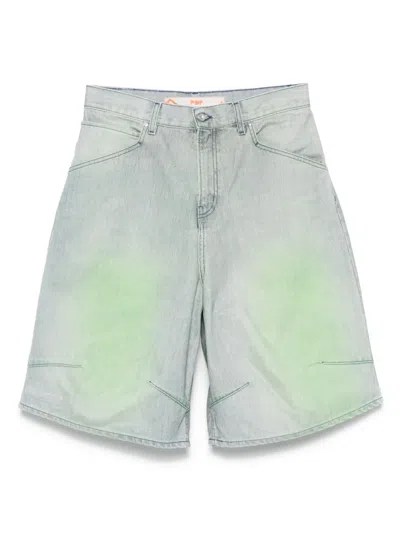 褶饰拼接牛仔短裤