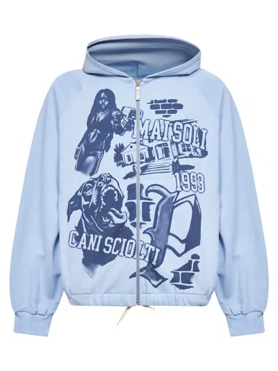 Light Blue Printed Cotton A Zip-up Hoodie