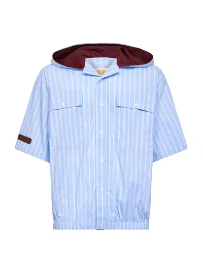 Light Blue Striped Cotton Blend Raf Hooded Shirt