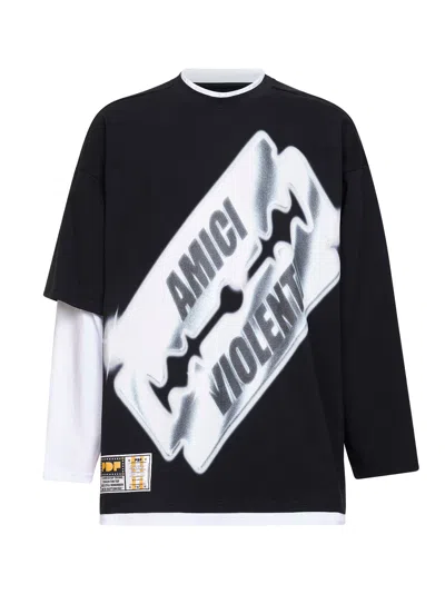 Black Cotton Jersey Skinny Barti Sempre Liberi T-shirt