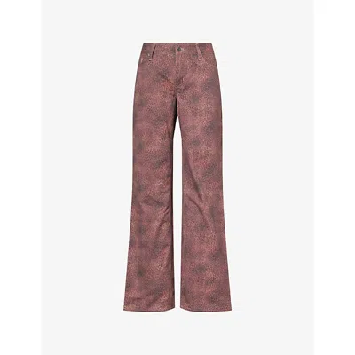 Womens Red Leopard Cicely Straight-leg Cotton Trousers Xs In Pink
