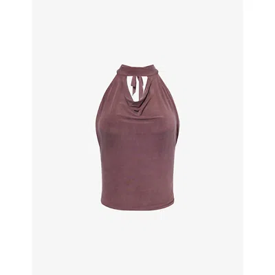 Womens Kylie Halterneck Stretch-woven Top Mahogany In Brown