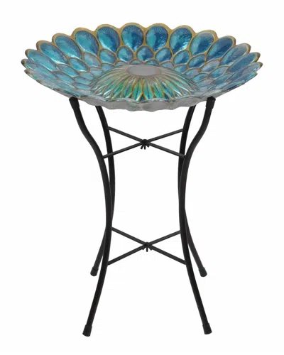 Outdoor 18in Solar Hand Painted Fusion Glass Birdbath