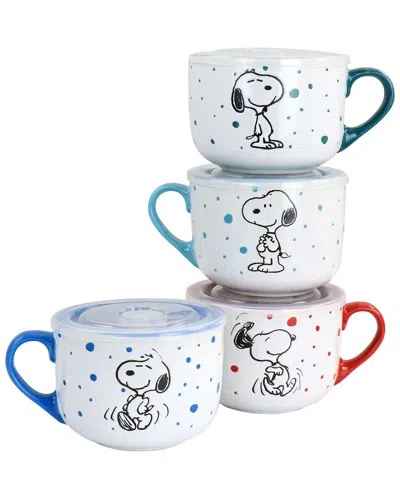 Snoopy Songs 4pc Stoneware Mug Set In Multi