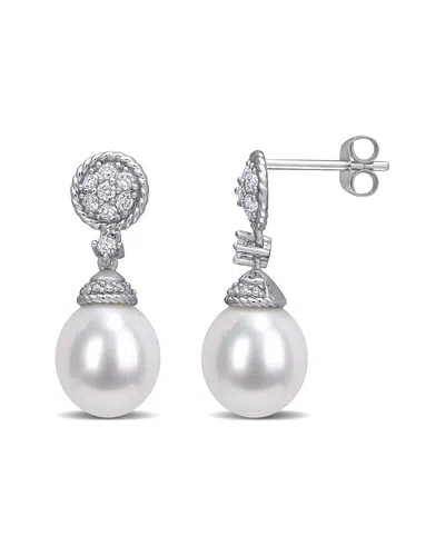 Silver 8.5-9mm Freshwater Pearl & Cz Earrings