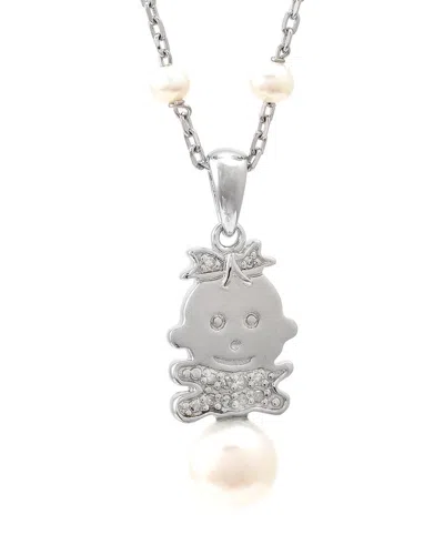 Silver Diamond 2.80mm Pearl Pendant Necklace