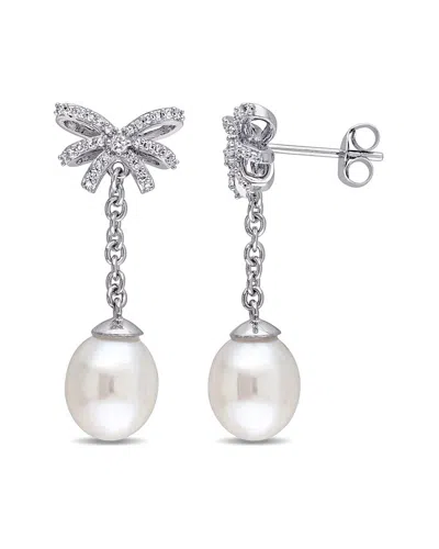 Silver 0.04 Ct. Tw. Diamond 7.5mm Pearl Earrings In Metallic