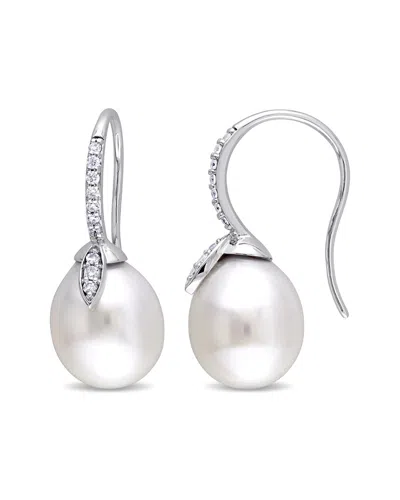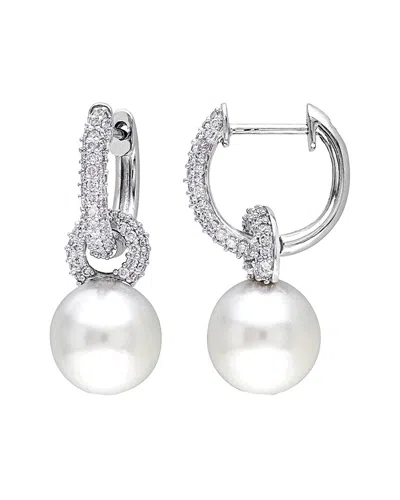14k 0.96 Ct. Tw. Diamond & 11-12mm South Sea Pearl Earrings In Silver