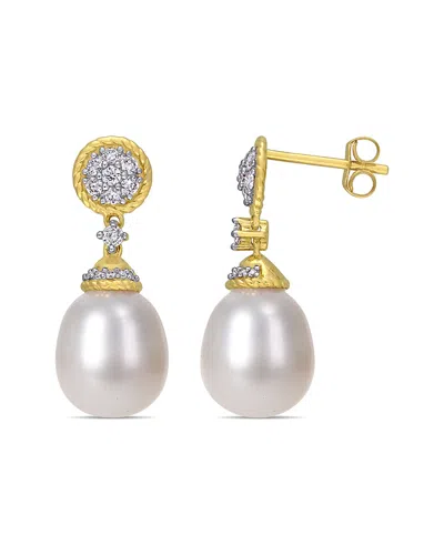 Imperial Silver 0.38 Ct. Tw. White Topaz & 10-11mm Golden South Sea Pearl Earrings