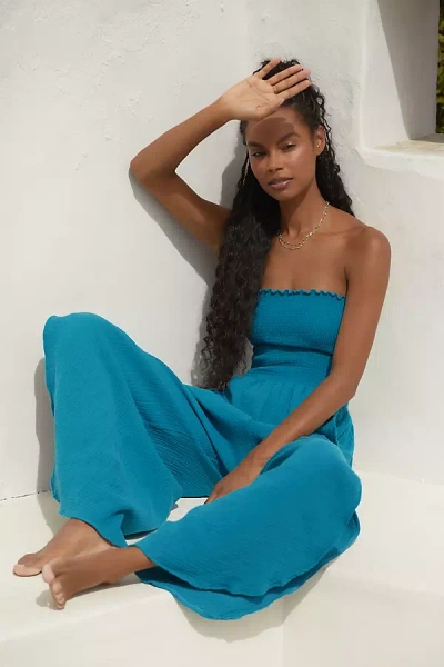Torey Strapless Smocked Romper In Blue
