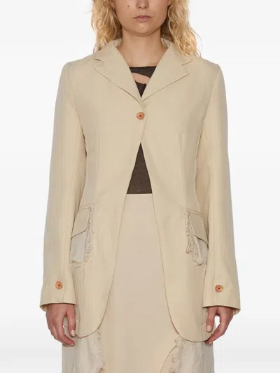 One-button Frayed Blazer In Neutral