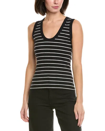 Rib Stripe U-neck Tank In Black